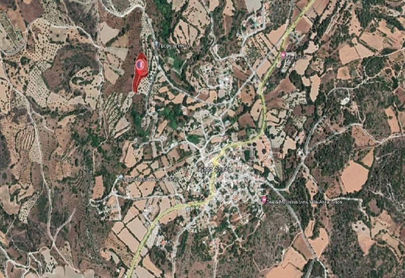 Agricultural field in Lysos community of Paphos district. It is situated at a distance approximately 560 m northwest of the community center and approximately 70 m southwest of Prophet Ilias Church.