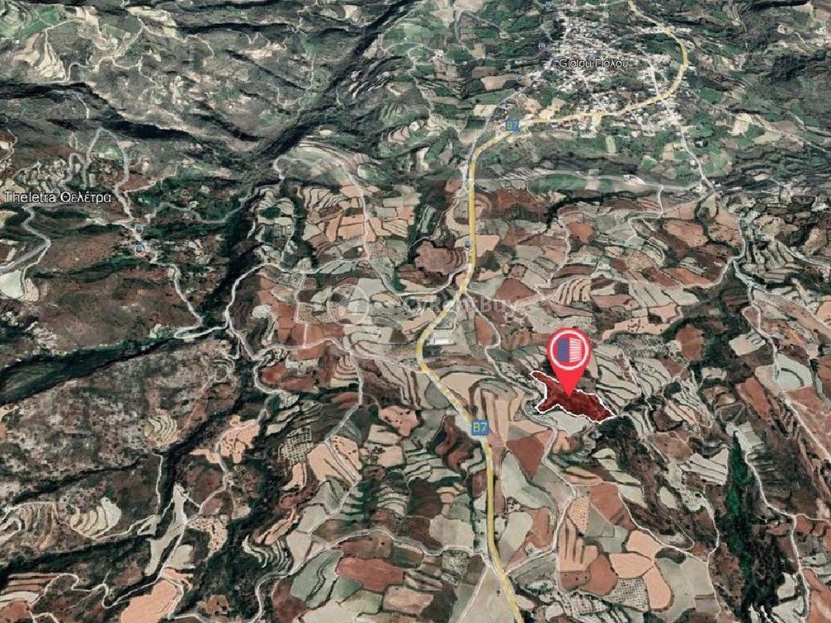 The property for sale is an agricultural field in Theletra community in Paphos District. It is located 2 km southeast of the community center and 200 meters east of the connecting road Paphos - Polis Chrysochous.
