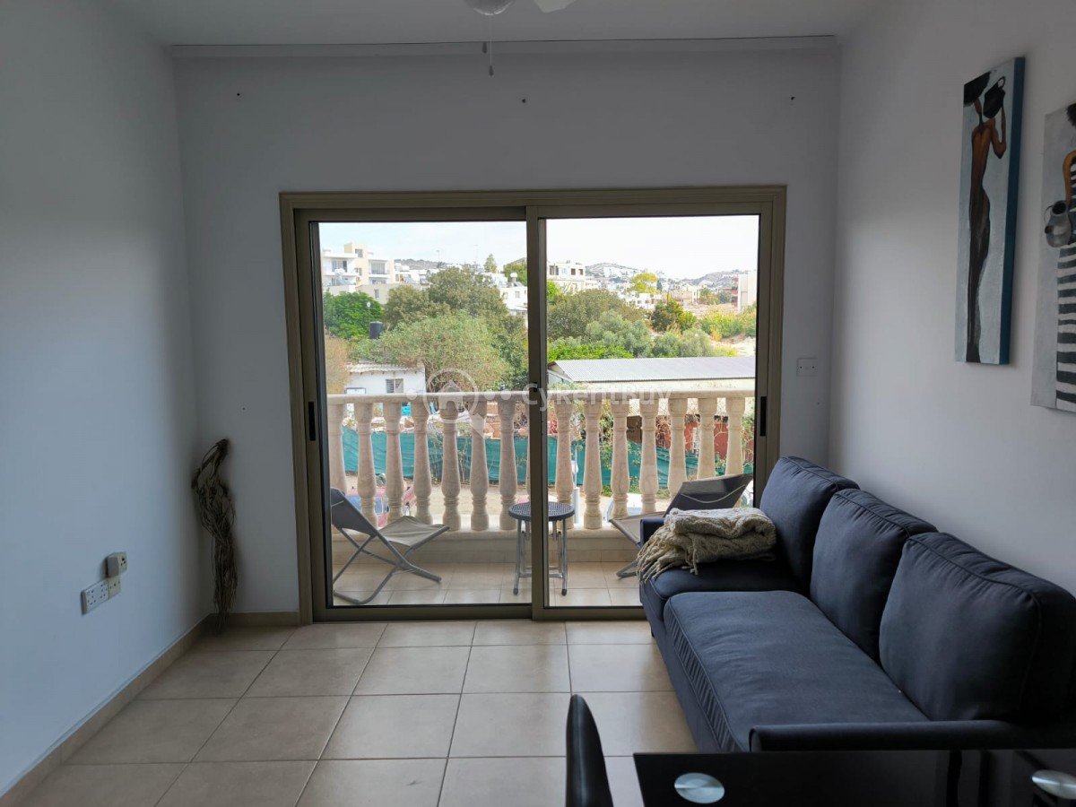 À louer, cet agréable appartement de 1,5 chambre situé dans un complexe résidentiel bien entretenu avec piscine commune, dans le quartier recherché de Geroskipou, à proximité de Paphos.