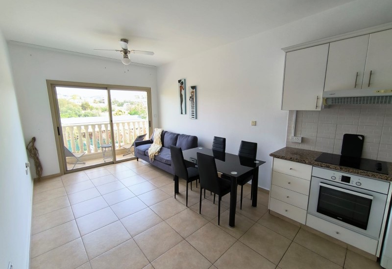 À louer, cet agréable appartement de 1,5 chambre situé dans un complexe résidentiel bien entretenu avec piscine commune, dans le quartier recherché de Geroskipou, à proximité de Paphos.