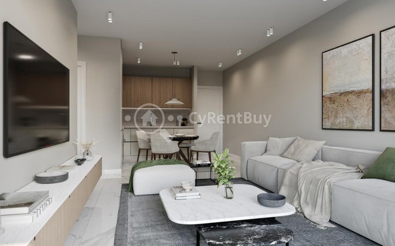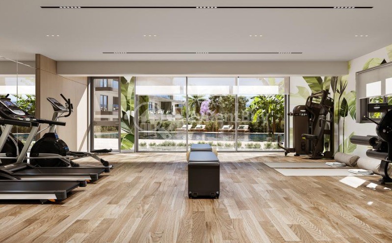 The development is enriched with premium lifestyle amenities, including a large communal swimming pool surrounded by lush landscaped gardens—perfect for relaxation under the Cyprus sun. A fully equipped gym overlooking the pool provides a motivating space for maintaining an active lifestyle.