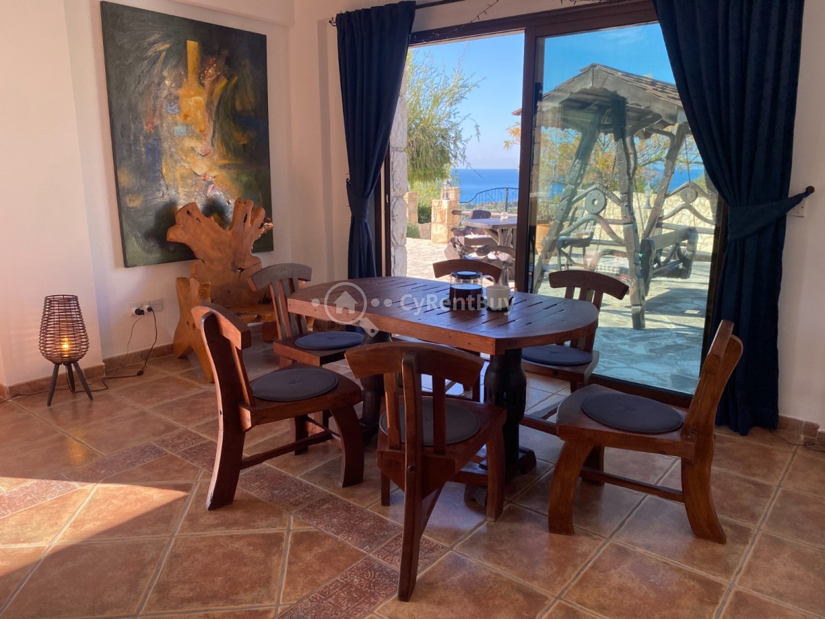La propriété s'étend sur un vaste terrain avec une piscine scintillante et une vue imprenable et dégagée sur la mer.