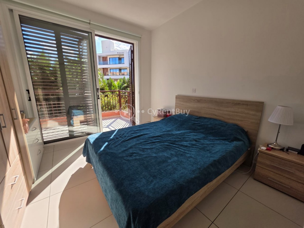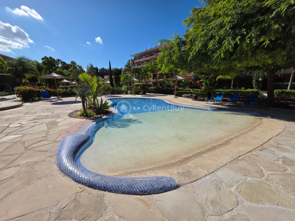Part of a beautifully maintained complex with a communal swimming pool and landscaped gardens.